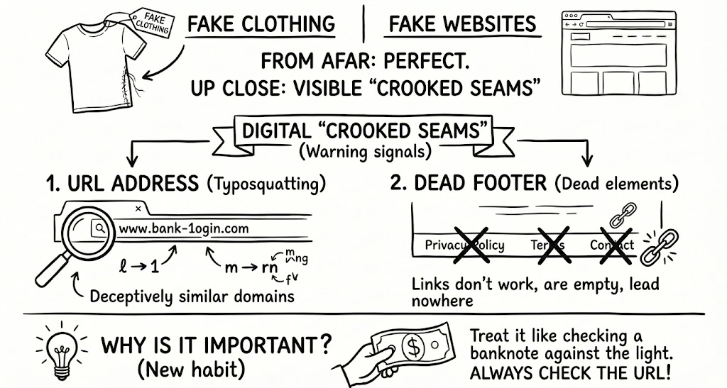 Fake websites are like counterfeit designer clothes – from a distance, they look perfect, but up close, you can see the crooked seams. In the digital world, those “seams” are the URLs and dead interface elements.
