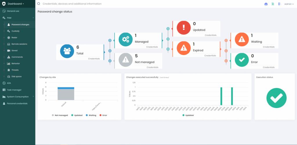 Automated password management, which can be scheduled in cycles (e.g., monthly) or executed every time an admin session ends.
